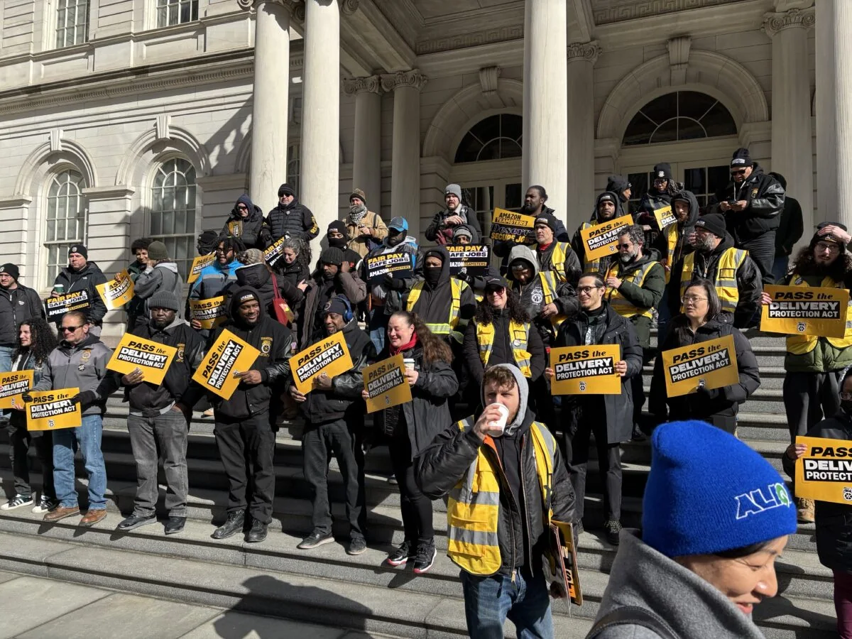 In a move that could have significant implications for New York City's delivery companies, a Teamsters-led rally on the steps of city hall marked the reintroduction of a bill that would require final mile delivery companies like Amazon to be licensed by the city. The proposed Delivery Protection Act aims to protect workers in the last-mile delivery industry, but its scope and potential impact are still unclear.