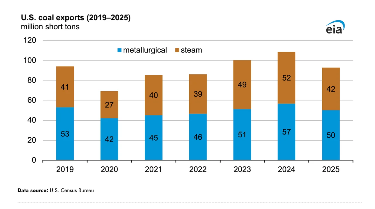 After four years of steady growth, the United States' coal export market experienced a significant downturn in 2025, with shipments totaling 93 million short tons, a decrease of 16 million short tons from the previous year. This decline marks a reversal of the trend that had seen US coal exports rise steadily since 2017. The drop in exports is largely attributed to China's imposition of tariffs on US coal imports, which significantly impacted the market. As a result, thermal coal exports fell by 18% and metallurgical coal exports declined by 11%, highlighting the vulnerability of the US coal industry to global market fluctuations.